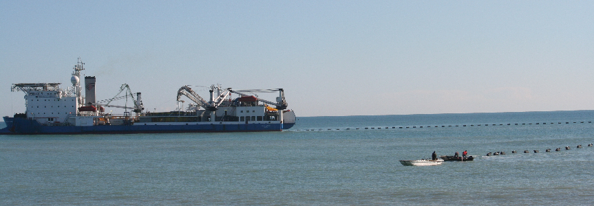 Aproximación a costa del enlace entre Valencia y Mallorca, 237 km de línea en corriente contínua.